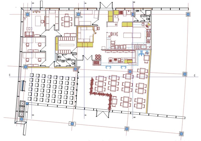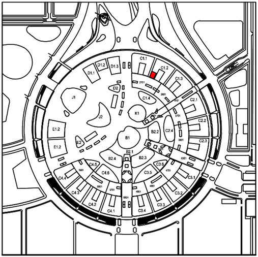 Půdorys zvýšeného mezaninu expoziční části pavilonu